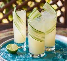 Stir well, then drop in a strip of cucumber before serving.